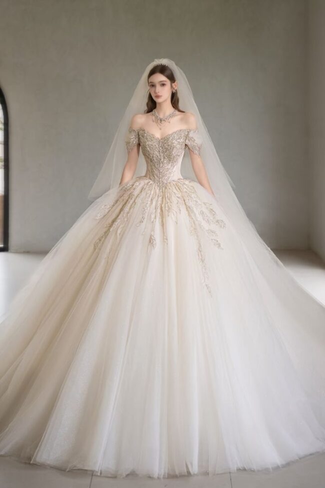 根據您的身型、肩寬與婚紗風格