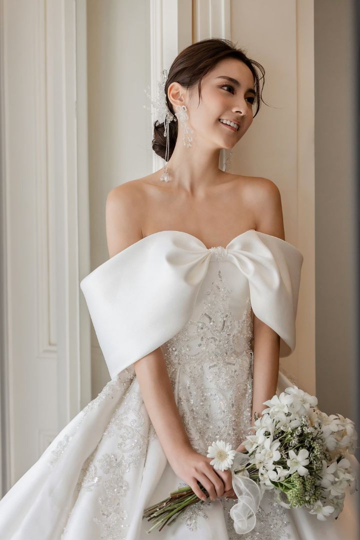 根據您的身型、肩寬與婚紗風格