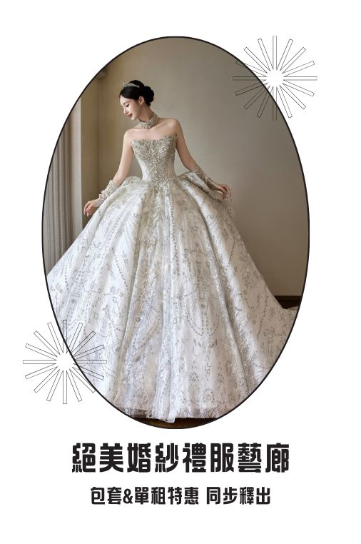 大拖尾白紗、韓系輕婚紗及新中式禮服,一應俱全